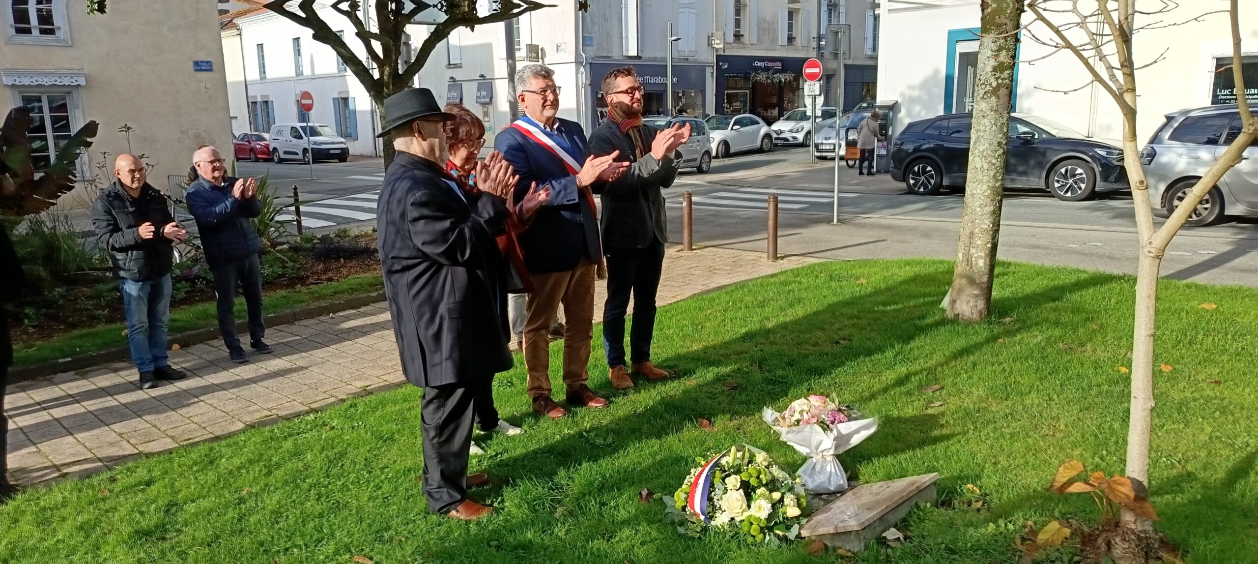 Enfin, pour mémoire, vous trouverez ci-après une photo du 9 décembre 2025 (120ème anniversaire de la Loi de 1905) lors du dépôt de gerbes au pied de l’Arbre par Luc Bouard, maire de la Roche sur Yon et Jean Burneleau, Co-Président de l’OVLGC.