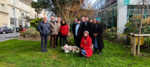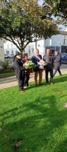 Dépose de fleurs au pied de l’Arbre de la Laïcité en présence du Maire et de certaines personnalités.